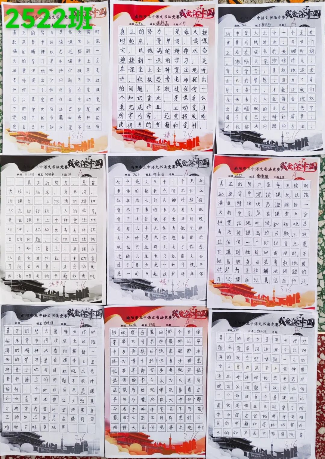 笔墨凝香,方正立身;翰墨润心,笃行致远。书写,是中华优秀传统文化的璀璨瑰宝,更是学生求学立身的基础素养。作为基础年级,七年级是习惯养成、根基筑牢的关键阶段,南阳市三中始终秉持“以文润心、以美启智”的教育初心,将书写素养培育深度融入日常教学全过程,以“基础年级从基础抓起,夯实书写筑牢根基”为核心导向,引导学生执笔习字、以字修心,让方正笔墨成为少年成长路上的坚实底色,让翰墨书香浸润校园每一个角落。