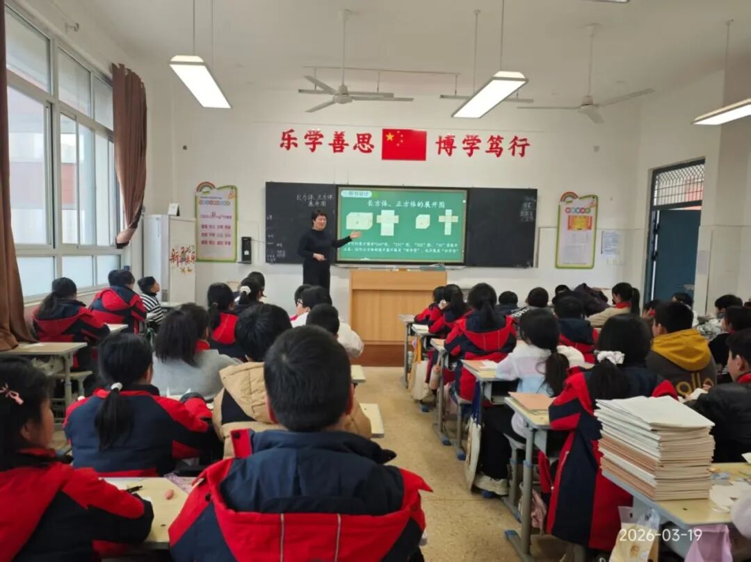 数学课则分学段精准发力,低年级通过摆小棒、拨计数器等动手操作,让学生在具象实践中建立数感;中年级聚焦“加法运算律”,引导学生在算式对比与规律探究中,体会数学逻辑之美;高年级围绕“长方体和正方体的展开图”,在立体与平面的转化中,培养空间想象与几何思维;