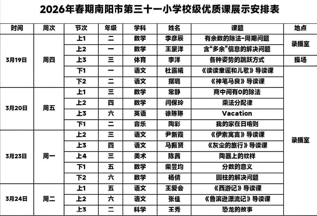 南阳市第三十一小学2026年春期教研活动纪实