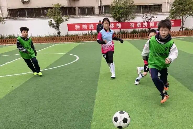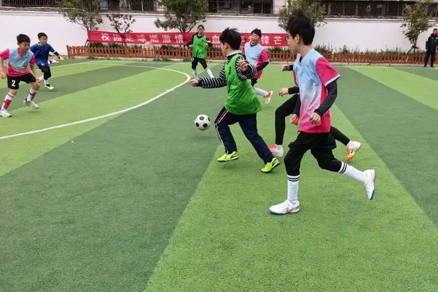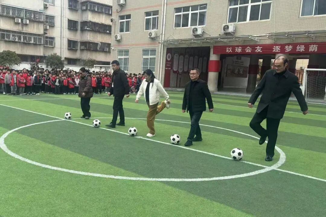 学校领导班子为本届校园足球超级联赛开球。