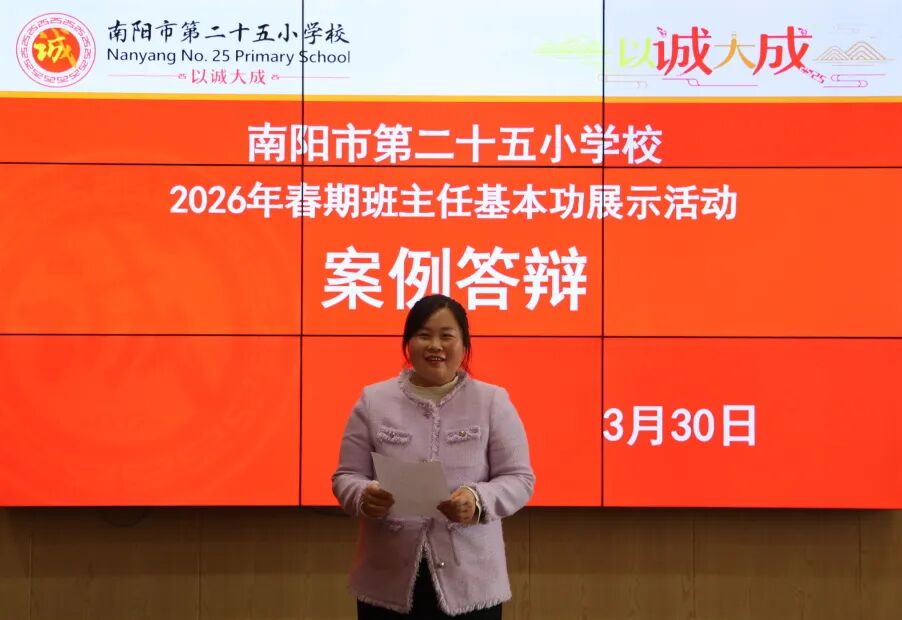 春日育新机,耕耘正当时。为深入贯彻立德树人根本任务,进一步夯实班主任专业根基,淬炼育人本领,彰显新时代班主任的责任与担当。2026年3月30日下午,南阳市第二十五小学校组织开展了班主任基本功展示活动,参赛班主任们尽展师者风采,共话育人初心。