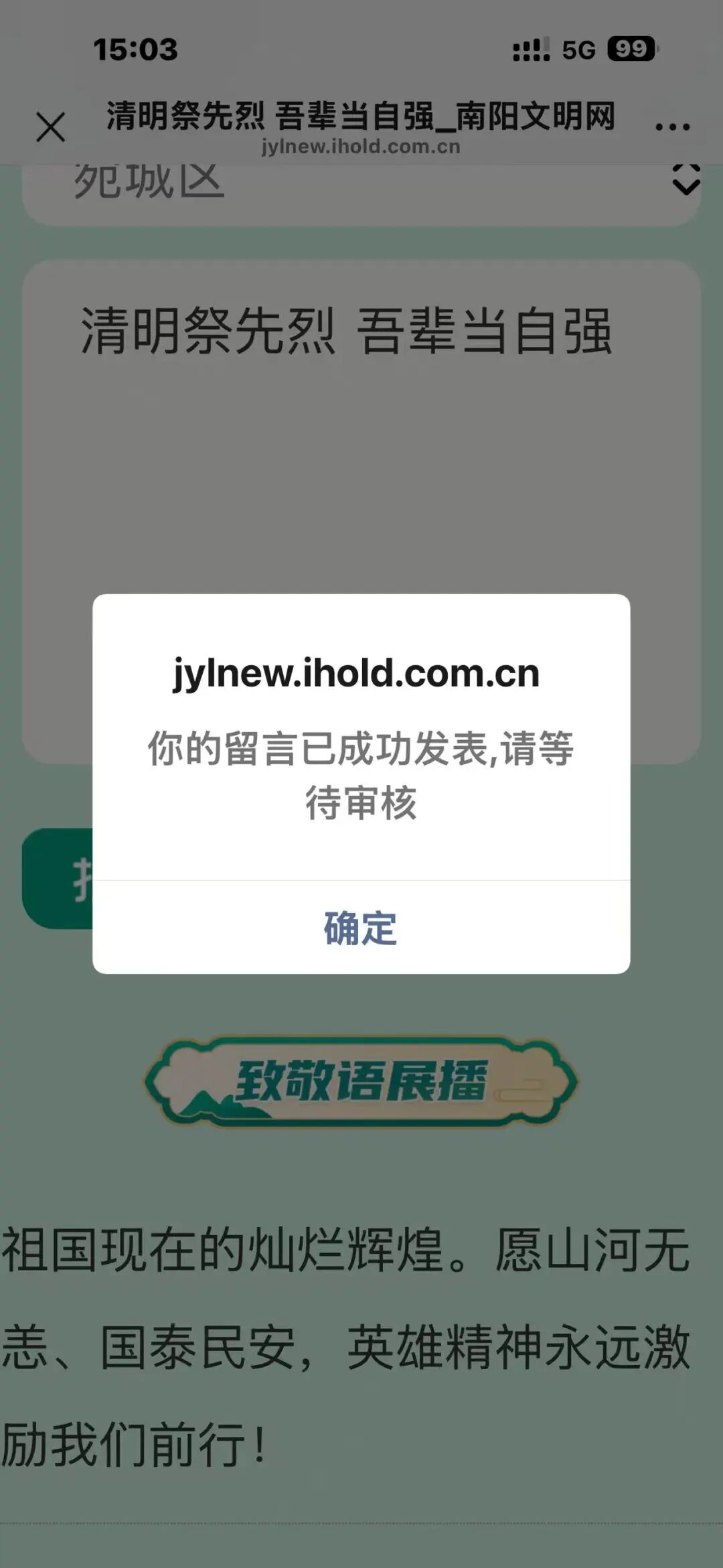学校积极响应上级号召,全体师生参与“清明祭先烈 吾辈当自强”线上追思寄语网络文明传播活动,通过“云端祭扫”的方式,深入推进移风易俗,厚植文明、节俭、绿色的祭扫理念,让广大青少年在活动中增进爱党、爱国、爱社会主义的情感,赓续红色血脉,争做时代新人。