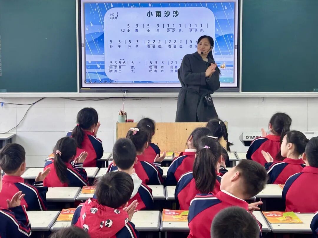 陈晓燕老师的点评如春风化雨,为活动注入了深刻内涵。她以温暖的话语肯定两位教师的用心付出,更以专业的视角为教学指明方向:“学科融合要紧扣音乐之魂,避免形式化的堆砌;节奏乐理教学需扎根学生心田,用‘音阶梯子’‘乐句类比’等巧思让知识鲜活起来;创编活动要跳出动作模仿的局限,融入节奏与和声的密码,让学生在创造中触摸音乐的本质。”陈老师的话语中饱含对音乐教育的深情,她鼓励全体教师以课标为舵、以教材为帆,在课堂中循序渐进培育学生的音乐核心素养,让音乐课堂成为滋养心灵、孕育美好的乐园。