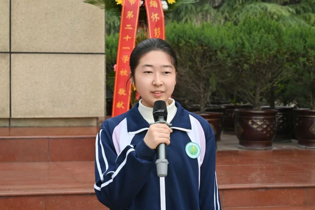 随后,学生代表上台发言,字字铿锵,句句深情。学生代表表示,会永远铭记先烈们的英勇事迹,珍惜来之不易的幸福生活,立志刻苦学习、锤炼品格,以英烈为榜样,树立远大理想,长大后为祖国发展、民族复兴贡献青春力量。
