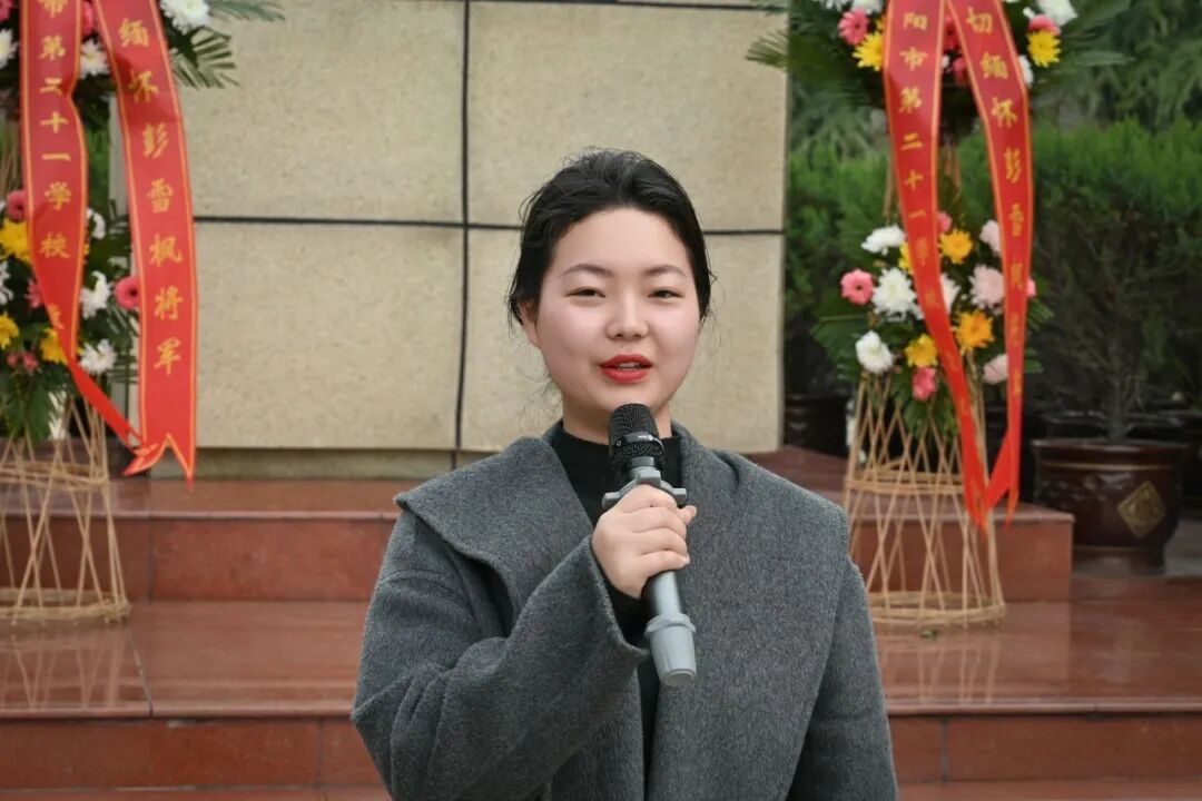 活动中,教师代表汪萌萌老师上台发言。汪老师结合自身教育初心,表达了对革命先烈的崇高敬意。她表示,作为新时代教育工作者,必将坚守育人使命,传承英烈精神,潜心教书育人,引导学生铭记历史、崇尚英雄,用责任与担当培育祖国未来。