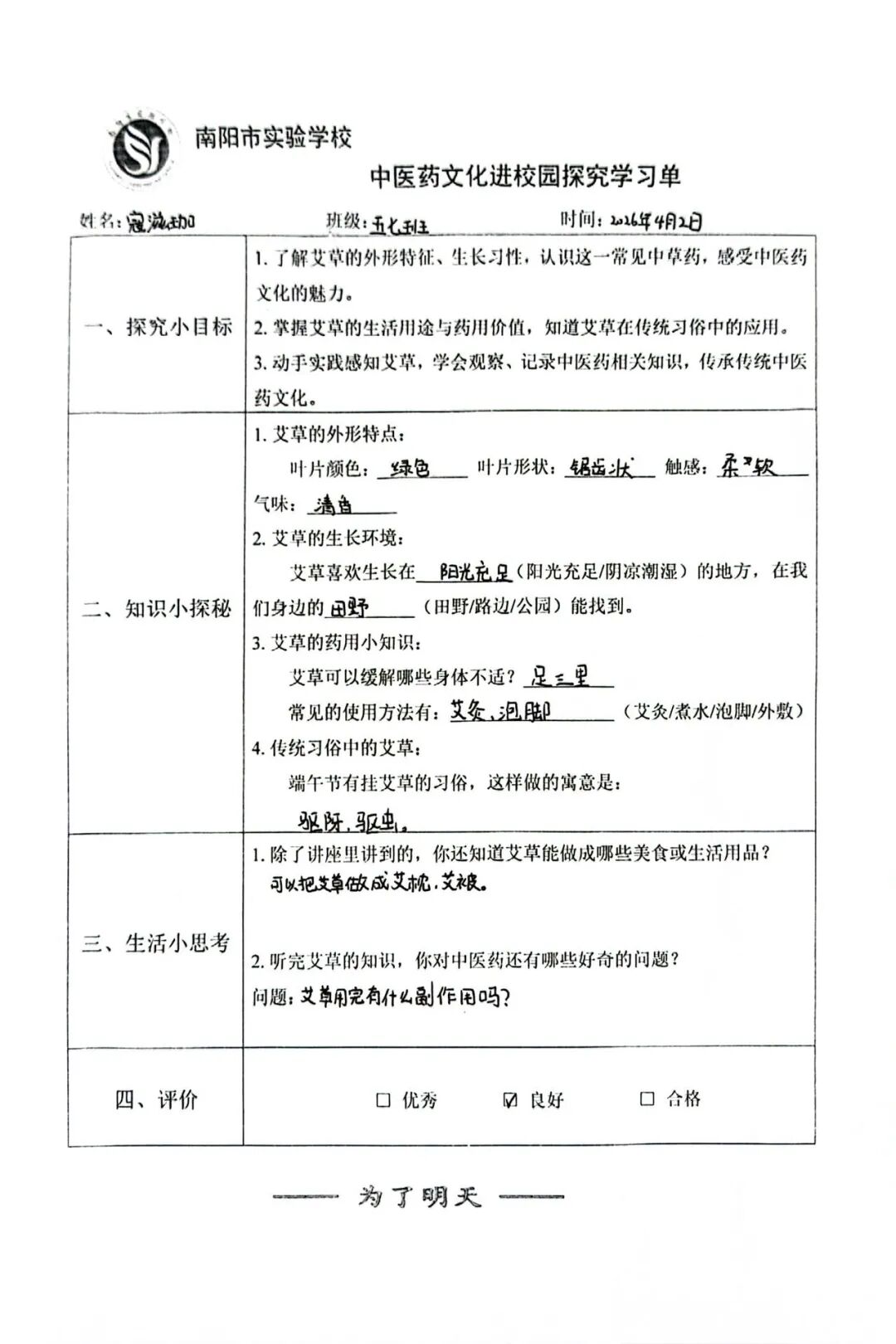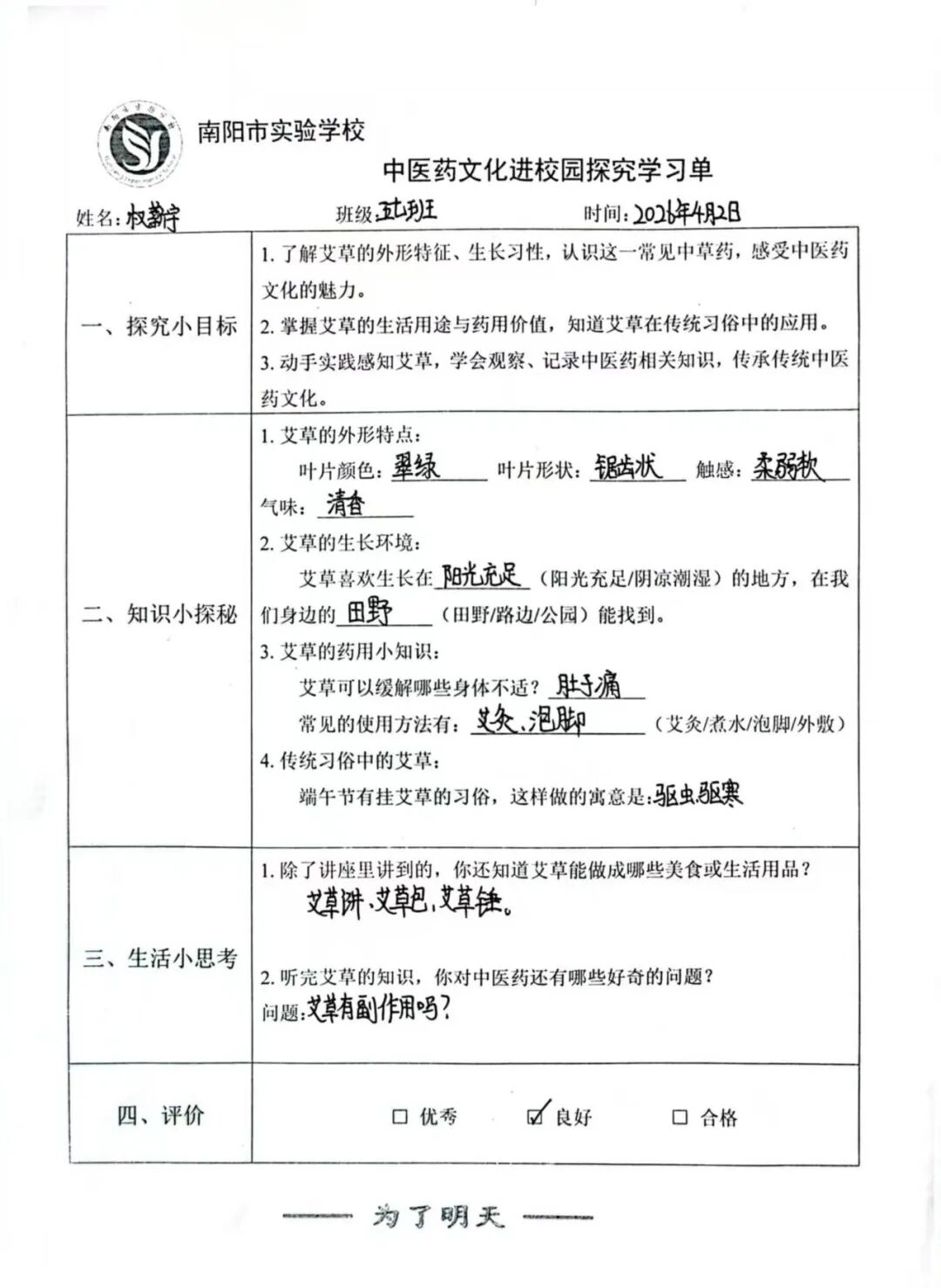 中医药文化作为中华优秀传统文化的璀璨瑰宝,凝聚着先民的生存智慧与健康理念。4月2日下午,宛城区中医药发展中心组织相关专家走进南阳市实验学校做“艾文化”专题讲座。南阳艾草作为中医药文化中独具魅力的符号,承载着丰富的历史渊源、药用价值与民俗内涵,是南阳一张靓丽的名片,这张名片飞进实验校园,一场关于文化传承与健康启蒙的美好邂逅就此展开。