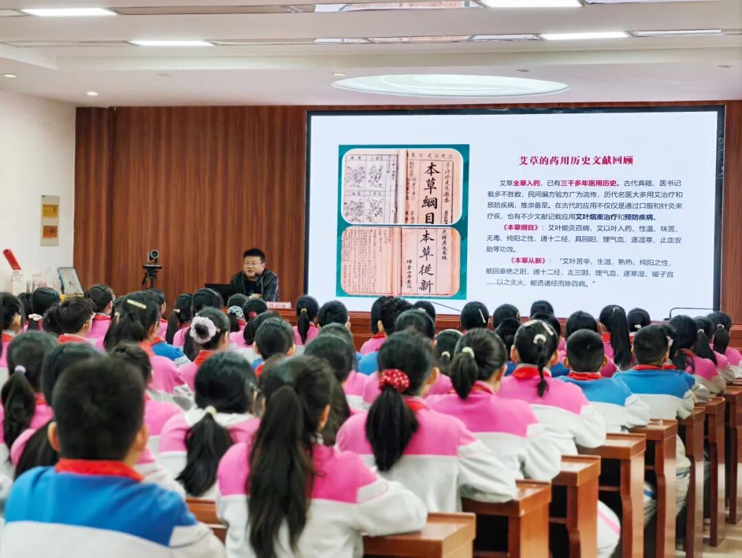 中医药专家马元涛老师以“艾”为主题,从艾草的特性、产品分类、养生方法等方面向学生普及中医药知识。马老师用生动的比喻和实物演示,把深奥的艾灸原理讲得妙趣横生。孩子们在欢笑中记住了“家有三年艾,郎中不用来”的谚语,更自豪地感受到南阳作为医圣故里、世界艾乡的文化底蕴,爱家乡、爱中医的种子悄然生根。