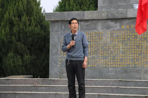 上午10时许,祭扫活动正式拉开帷幕。太山庙乡关工委“五老”宣讲团成员王怀亮,结合详实的历史史料,为全体师生深情讲述高嘴坡战役的历史背景、战斗经过与重要意义,带领大家重温那段烽火连天、浴血奋战的峥嵘岁月,并以“继承先烈遗志,传承红色基因,报效伟大祖国”为主题开展宣讲,激励师生铭记历史、不负韶华。