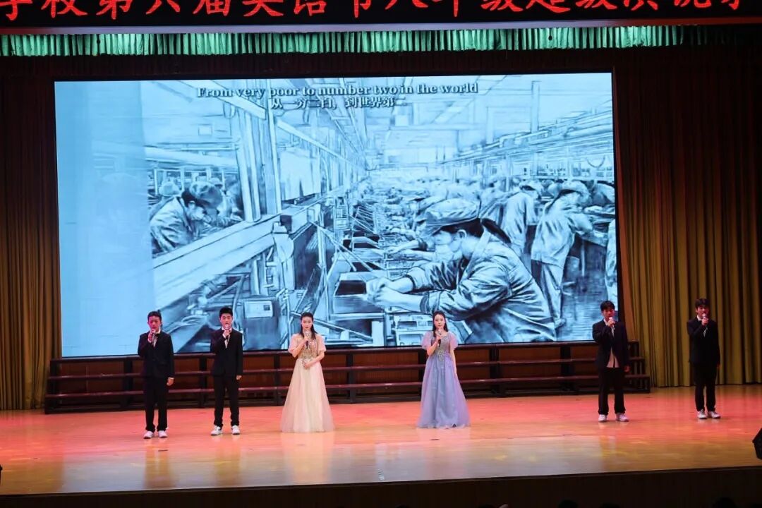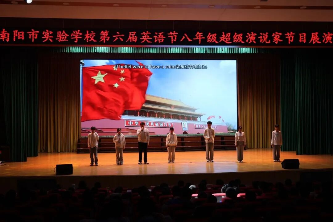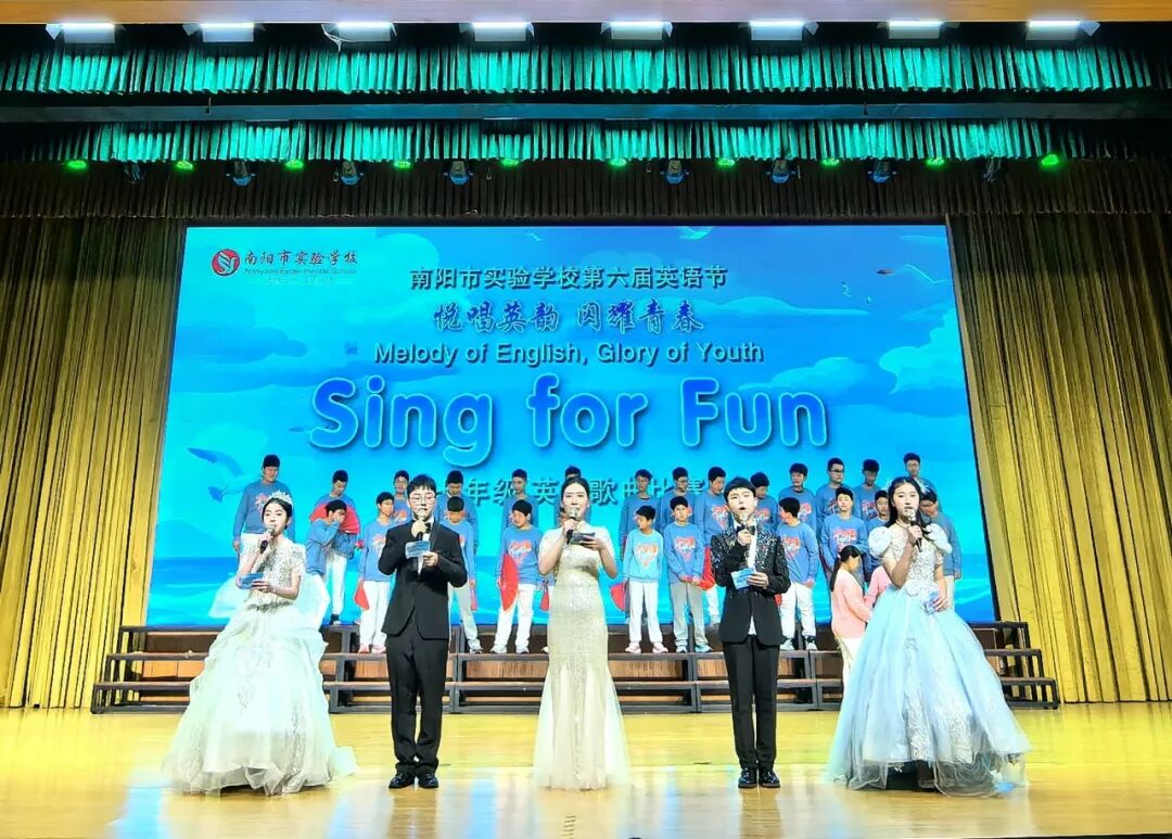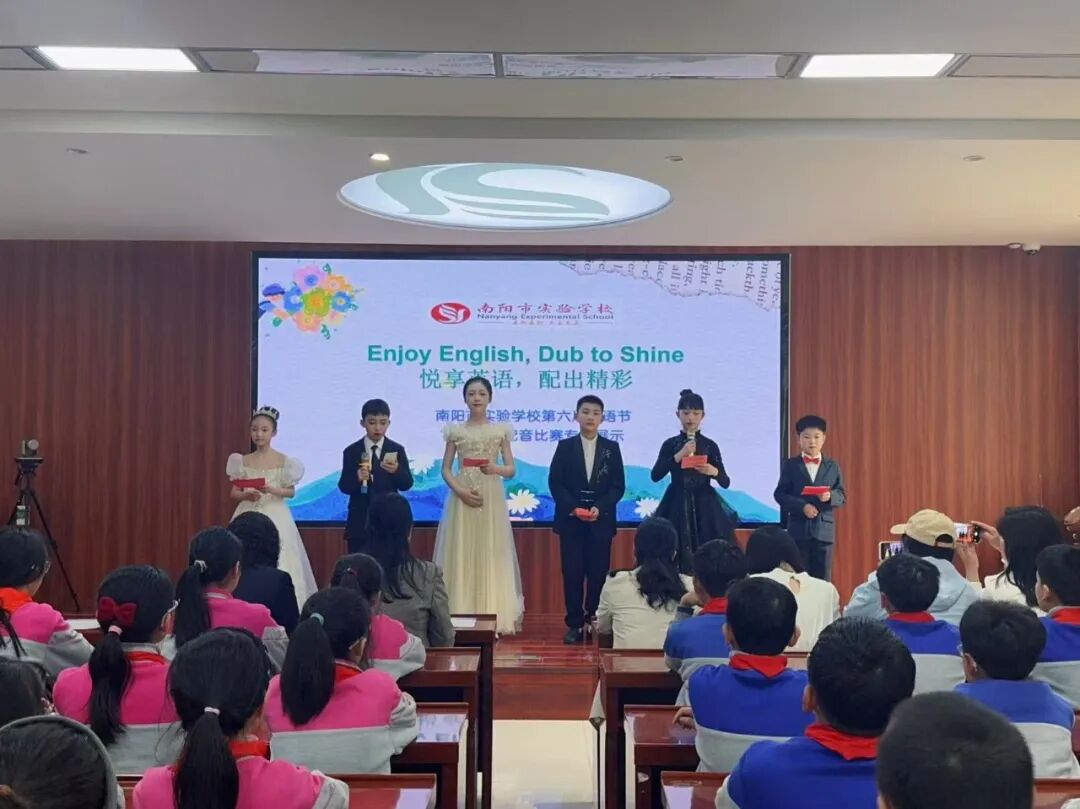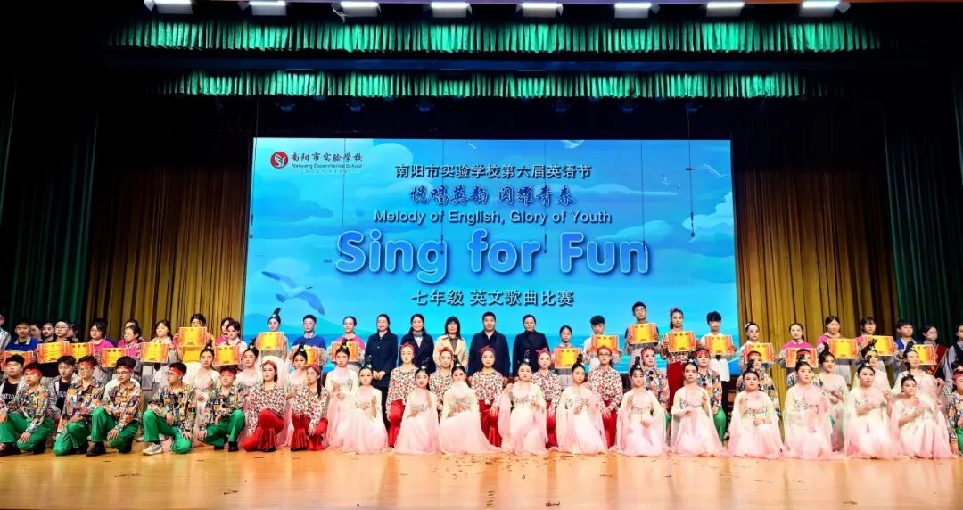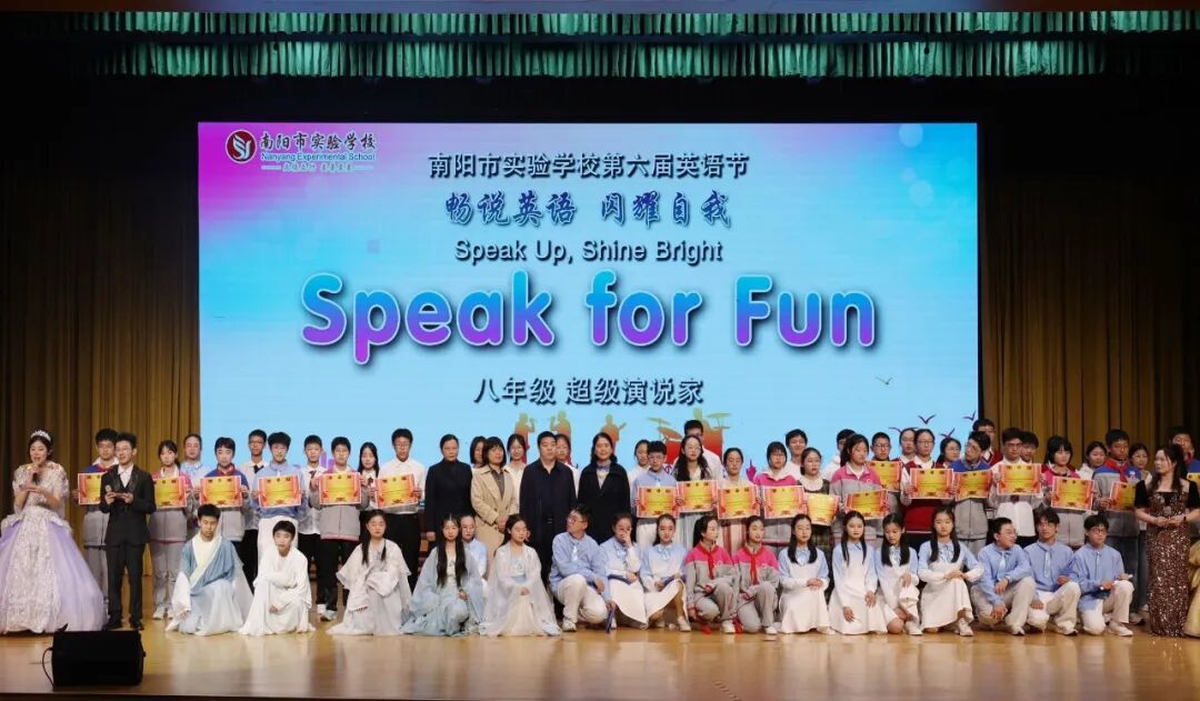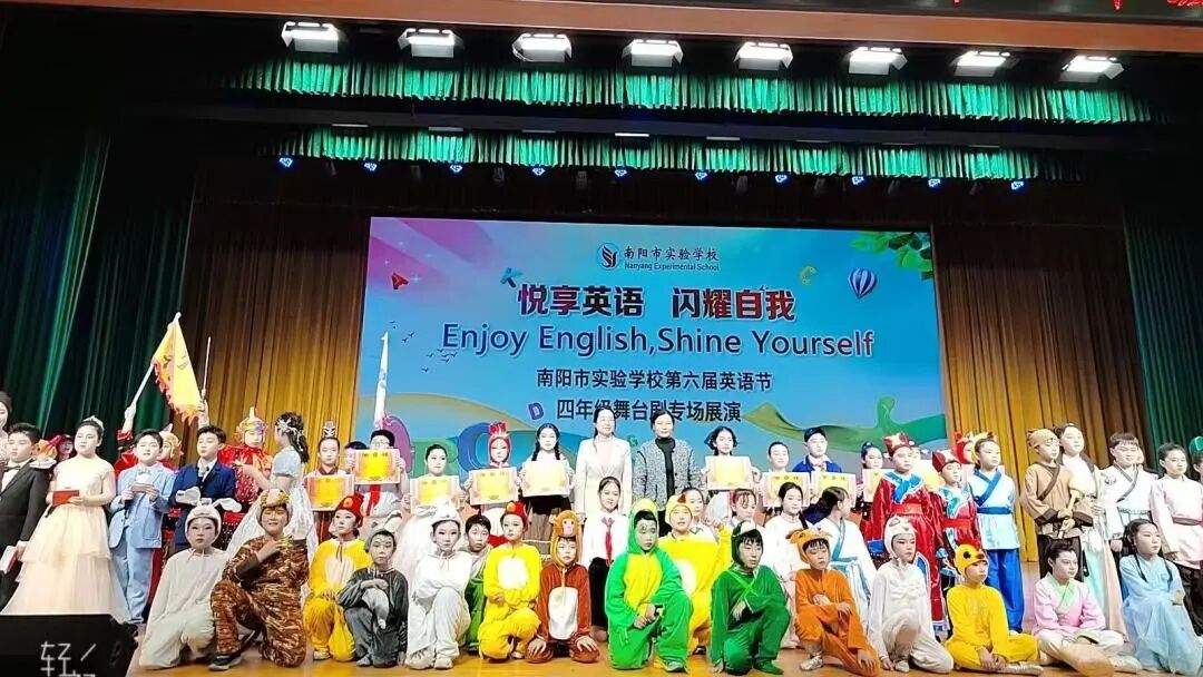 为进一步丰富校园文化,激发学生学习英语热情,引领更多学生在传播中国文化的舞台上展现青春风采,4月7日—10日,南阳市实验学校以“悦享英语,闪耀自我 Enjoy English,Shine Yourself”为主题,开展第六届英语节活动。孩子们用歌声、朗诵、戏剧和欢笑,感受英语的魅力。 Opening Ceremony 4月7日早上,孩子们踏着欢快的歌声,在老师们和卡通人物的英语问候中走进校园,第六届英语节拉开了帷幕。 Watch for fun 一二年级以“悦享英影,快乐成长”为主题,开展了趣味英文动画观影活动。同学们在精彩的影片中聆听地道发音,在生动的故事里感受英语魅力,让经典动画成为打开英语世界的小钥匙。在欢笑与沉浸中体验学习乐趣,既收获了童真与快乐,也营造了轻松愉悦的英语学习氛围。 Draw for fun 三年级以“趣绘英语,字母焕彩”为主题,开展了创意字母画展示活动。同学们用灵动的色彩、巧妙的构思与丰富的想象,将英文字母与趣味图案巧妙结合,让单调的字母变得鲜活生动。在绘画与创作中感受英语乐趣,既展现了童真创意,也营造了活泼浓郁的英语学习氛围。 Act for fun 四年级以“悦享英语,演绎精彩”为主题,带来了一场精彩的英语舞台剧专场展演。同学们精心编排剧目,用流利自然的口语、自信大方的表演,将英语学习与舞台艺术完美结合,充分展现了扎实的语言功底与蓬勃的少年朝气,营造出浓郁的校园英语文化氛围。 Dub for fun 五年级以“悦享英语,配出精彩”为主题,献上了一场精彩纷呈的英语配音展演。同学们选取经典影视片段,用纯正流畅的口语、生动传神的演绎,将语言学习与艺术表达巧妙融合,尽显英语魅力与少年风采,为校园增添了浓厚的英语文化氛围。 Share for fun 六年级开展了一场别开生面的“英语一般将来时·周末/暑假计划”手抄报创作活动。同学们化身小小设计师,用画笔与英文书写对未来的美好期许!孩子们用心构思周末休闲、暑假出行、成长规划等内容。同学们创意满满,手抄报既具知识性,又有独特的艺术美感。充分展现了扎实的英语基础与丰富的想象力。当英语遇见创意,学习便变得更有乐趣!学生在乐中学、在学中用,全面提升了英语素养! Sing for fun 七年级以“悦唱英韵,闪耀青春”为主题开展了英语歌唱比赛。每一个班级的节目都创意十足、精彩纷呈。同学们用歌声拥抱英语,用风采展示自我,充分展现出七年级学子朝气蓬勃、积极向上的精神风貌,也让大家在欢乐的氛围中感受英语魅力,体会学习乐趣。整场比赛气氛热烈、秩序井然,掌声与喝彩不断。最后,老师们深情朗诵,为整场活动献上了一场精彩的视听盛宴。 七二十班《东西方文化在舞台上的碰撞》 East Meets West on a Stage 七四班《好时光》 Good Time 七十一班《百万梦想》 A Million Dreams 七十三班《大大世界》 Big Big World 七十四班《是什么让你如此美丽》 What Makes You Beautiful 七九班《尝试一切》 Try Everything 七七班《内卷与反内卷对决》 The Great "Juan" War 七十班《柠檬树》 Lemon Tree 七十六班《风格》 Style 七三班《我的梦》 Dream It Possible 七十七班《堵我赢》 Bet on Me 七八班《心怀梦想 奔赴山海》 Brave Dreams in the Big World 七十九班《唤醒》 Wake 七五班《冰雪奇缘》 Let It Go 七一班《为你骄傲》 Proud of You 七十九班《唤醒》 Wake 七十五班《歌舞青春》 We Are All in This Together 七二十一班《我们是勇敢者》《为你年轻》 We Are the Brave & Young for You 七十二班《虫儿飞》 Fireflies 七二班《立春》 Beginning of Spring 七二十二班《依靠我》 Count on Me 七年纪英语教师歌曲串烧 七六班《我们将震撼你》 Do Re Mi We Will Rock You Speak for fun 八年级以“畅说英语,闪耀自我”为主题,开展了“超级演说家”英语演讲比赛。舞台上,八年级学子们自信登场、从容表达,用流利纯正的口语诉说青春感悟,用铿锵有力的演讲传递心中热爱,每一段精彩的演说都尽显扎实的英语功底与昂扬的少年朝气。同学们在勇敢发声中突破自我、锻炼表达,在思想碰撞中收获成长、收获自信,不仅感受了英语语言的独特魅力,更在舞台上尽情绽放属于自己的闪耀光彩,书写了青春最动人的成长篇章! 八一班 情景剧 Experience Chinese Culture《走进中国文化》 八三班 演讲 I love youChina《我爱你中国》 八七班 演讲 Invitation to Wine《将进酒》 八九班 演讲 The Youth《青春》 八二十班 演讲 The Coolest Relay《最燃的接力》 八五班 演讲 Chinese Confidence《中国自信》 八二班 演讲 Nanyang, a place worth three visits and more《南阳一个值得三顾的地方》 八八班 情景剧Together for a Shared Future 《一起向未来》 八六班 演讲 Hanfu《汉服》 八十七班 情景剧 The Splendid Classic of Poetry《大美诗经》 八十一班 演讲 Peking Opera《京剧》 八十三班 演讲 Colourful China《彩色的中国》 八十九班 演讲 My Motherland and I《我和我的祖国》 八十五班 演讲 The Young China 《少年中国说》 八十二班 演讲 The Yellow River《黄河》 八十八班 演讲 If Belief Were to Have a Color《如果信仰有颜色》 八十六班 演讲 Only Henan《只有河南》 八十班 演讲 F Blue and White Porcelain《青花瓷》 八十四班 演讲 F China in Tang Poetry《唐诗里的中国》 八四班 演讲 Shine Together, Be Our Best《同心闪耀,做最好的自己》 Award Ceremony 本届英语节活动精彩纷呈、形式多样,覆盖面广,同学们在活动中尽显个人才华与团队协作精神,传承中华优