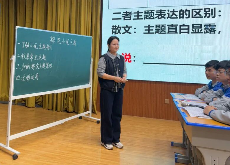 语文组杨万莉老师的《探究小说主题》复习课,紧扣小说主题表达核心逻辑展开教学。先对比散文与小说主题差异,明晰小说主题含蓄宏观的特点,梳理常见主题类型并结合中考拓展认知。依托多篇经典课文,从标题、人物、情节、环境多角度总结探究方法,拆解考点。结合篇目实战迁移练习,落实解题技巧,切实提升学生小说阅读答题思维与备考能力。