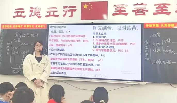 地理组丁丽君《西北地区》复习课以问题为驱动,借助板书梳理知识框架,搭建区域地理思维逻辑;依托中考真题限时训练,即时巩固所学,击破易错难点。整节课紧扣课标与中考考点,目标明晰、讲练结合,有效锻炼学生读图分析与规范答题能力,备考针对性强,复习实效突出。