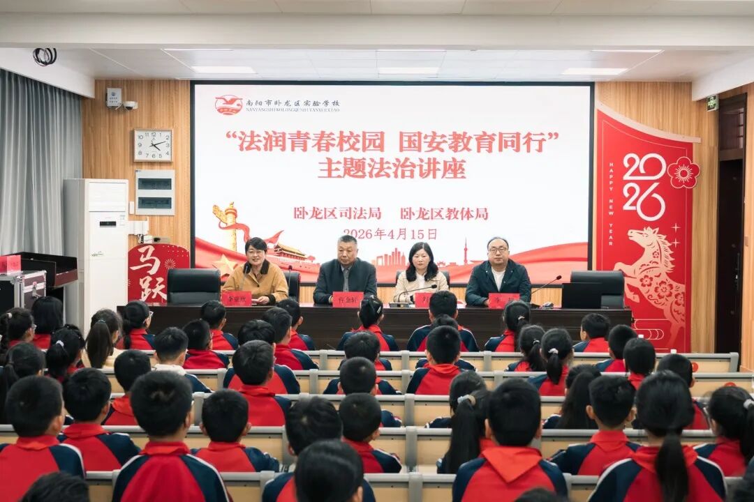 4月15日,在第十一个全民国家安全教育日到来之际,卧龙区司法局、教体局督导室的领导及广东普罗米修(南阳)律师事务所刘娜律师莅临我校,开展法治宣讲进校园活动。本次活动以“国家安全始于心,普法同行共成长”为主题,采取集中宣讲+主题班队会同步推进,扎实开展全民国家安全教育。