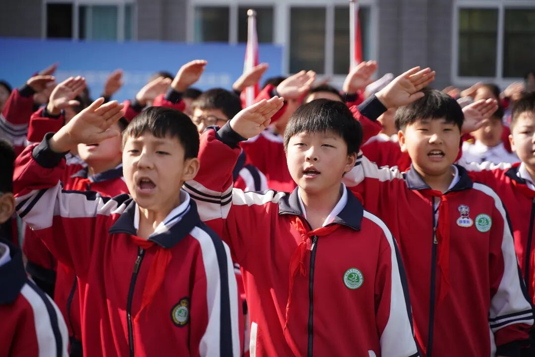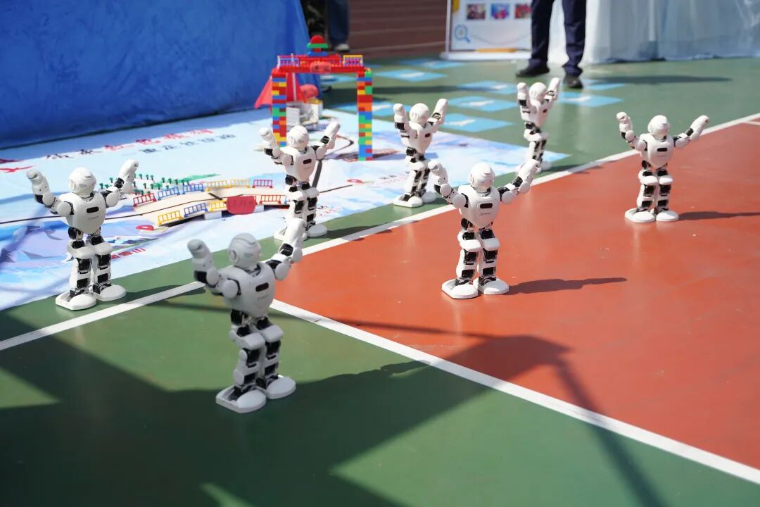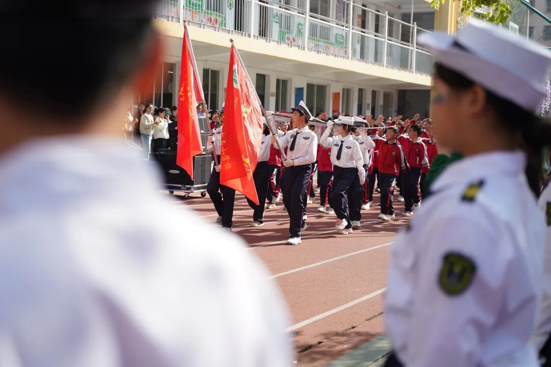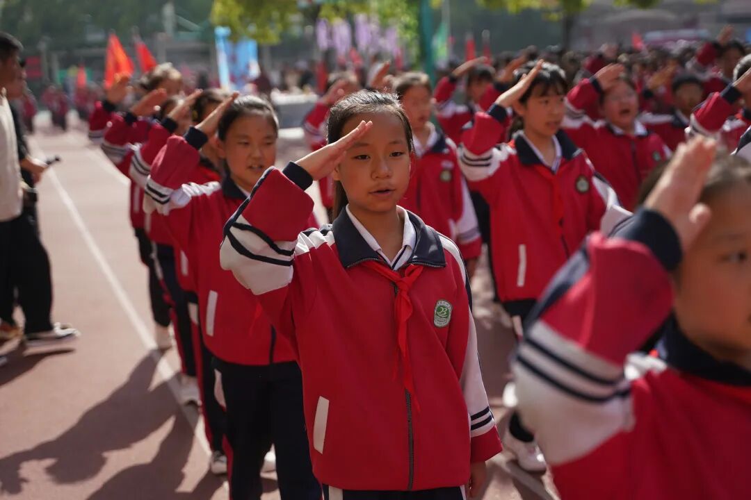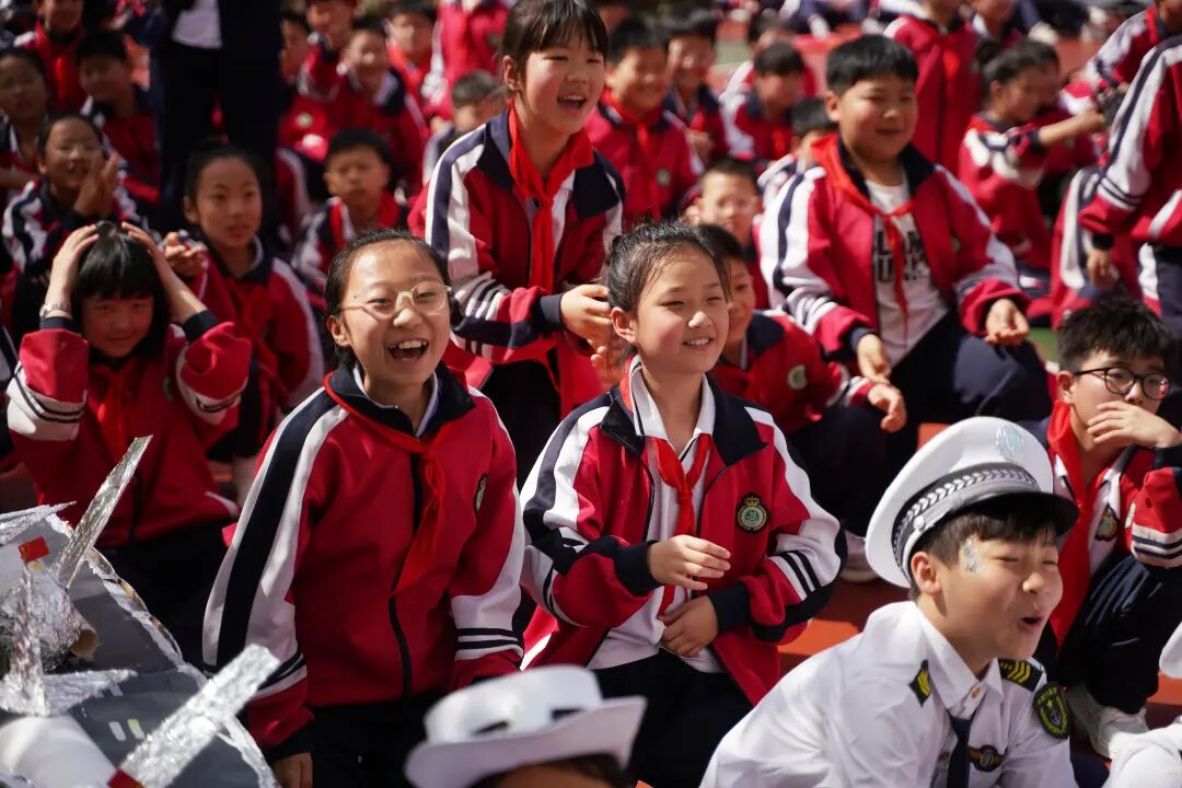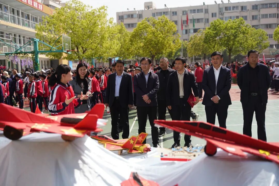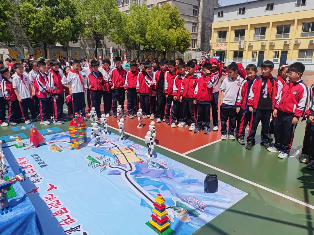 开幕式现场国旗飘扬,方阵震撼,四、五年级学生组成“黄继光连”“狼牙山五壮士连”“刘老庄连”“蓝天利刃方阵”“王海大队”“神炮连”“白老虎连”“海空雄鹰连队”“东风第一旅”等特色方阵,手持自制航模、战斗机模型,创意造型、口号嘹亮,30秒特色展示赢得阵阵掌声。