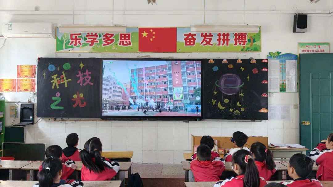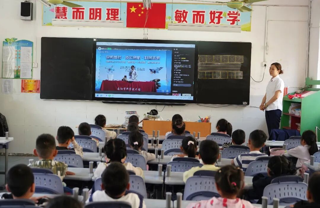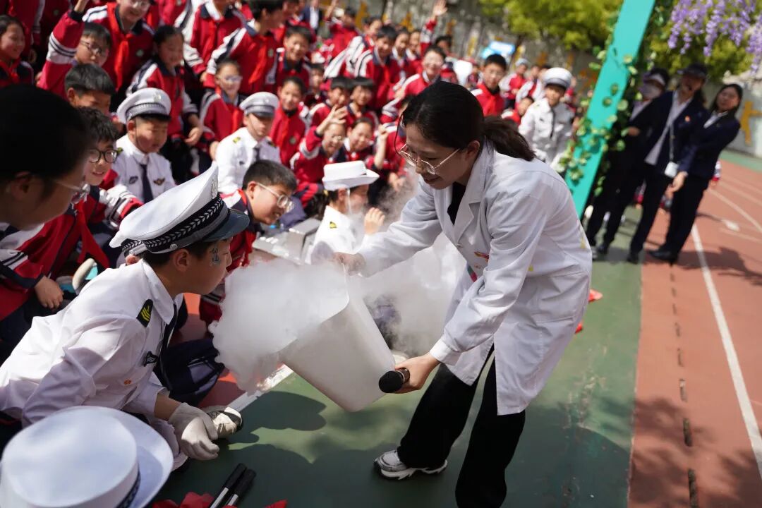 南阳市科技馆带来的奇趣科学课堂把整场活动推向了高潮,在科学老师的带领下,同学们走上舞台,近距离感受科技实验带来的魅力,未在现场的各班同学在教室内通过全程直播在线观看。