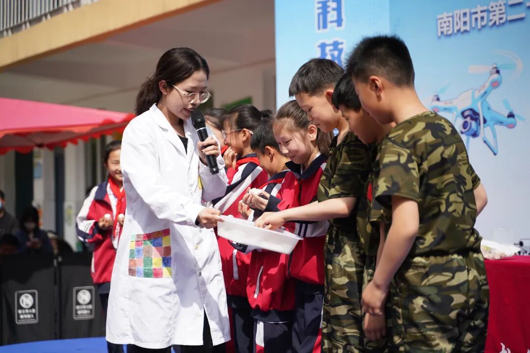 科技秀场水火箭腾空而起,仿真火箭筒、迫击炮震撼“发射”,南阳市航空学会专业团队带来的无人机编队飞行、穿越机炫技、仿生蝴蝶翩翩起舞,人形机器人互动、奇趣科学课堂精彩开讲,瞬间点燃全场热情!