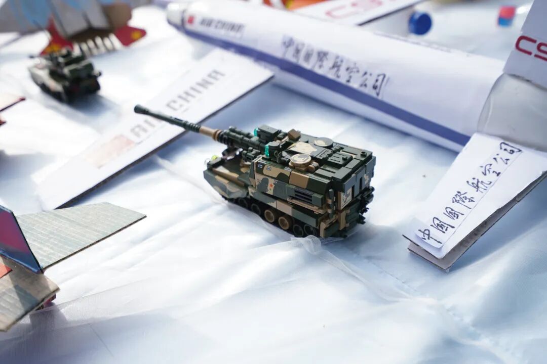 在学校成果展区,三大板块科技作品琳琅满目,“凌云展翼”航空区、“生命密码”探索区、“智慧守护”应用区,航模作品、编程机器人、科幻画、国防科技作品令人目不暇接,模拟飞行、无人机障碍赛、科乐思拼装……孩子们玩得不亦乐乎。